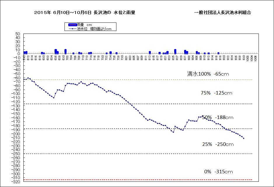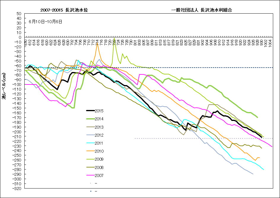 長沢池 概要 面積 33万m2 有効水深 2.5m 100日分 2.0m 50日分 1.0m 25日分 0.5m 地区水田に 6月10日から9月25日の 100日間供給可能な水量を確保。 (2011年以降は6月10日 開門) 2008 0701 |