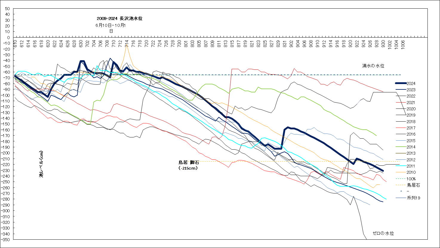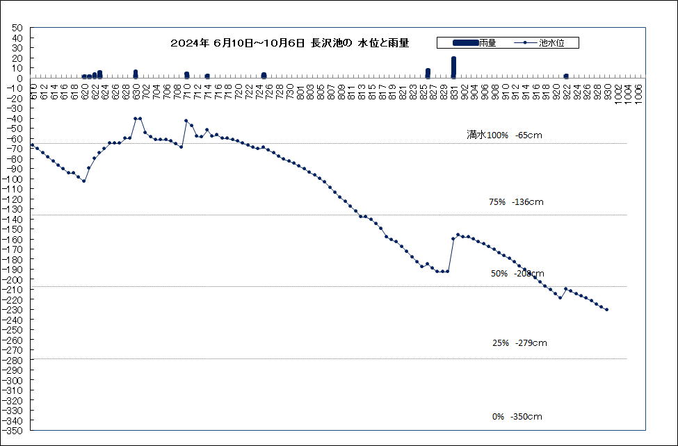 2008年6月18日鷹岳よりの眺め。大村地区まで用水が行き渡る。 長沢池の全貌。